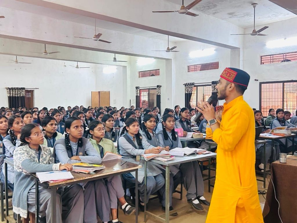 *देव संस्कृति विश्वविद्यालय शांतिकुंज हरिद्वार* से ईन्टरशिप कार्यक्रम के तहत कोण्डागांव आये विद्यार्थीयों का एक टोली जिले के विभिन्न ब्लाकों के विद्यालयों में जाकर योग व्यायाम से व्यक्तित्व विकास , भारतीय समाज में नशा एक अभिशाप , जीवन प्रबंधन विषय पर जनजागरण कार्यक्रम चल रहा है । 11/12/2024 को जिला मुख्यालय के केंद्रीय विद्यालय जनपद शाला कोंडागांव, स्वामी आत्मानंद विद्यालय तहसील पारा कोंडागांव, आत्मानंद गांधी वार्ड कोंडागांव, सरस्वती शिशु मंदिर जामकोट पारा कोंडागांव, कन्या हायर सेकंडरी स्कूल कोंडागांव में यह कार्यक्रम सम्पन्न हुई कार्यक्रम में प्रशिक्षु विद्यार्थियों ने बच्चों को योग से अपने आप को काॅन्सनट्रेट कैसे और क्यों करें ? इससे होने वाले लाभ को सुन बच्चों की उत्सुकता बढ़ी तो उपस्थित शिक्षकों ने प्रत्येक शनिवार को होने वाली गतिविधियों में योग को जोड़ने और सिखाने के लिए गायत्री परिवार से योग शिक्षक की मांग किया जो बच्चों को वैज्ञानिक विधि से योग व्यायाम सिखा सके । इस टोली का मार्ग दर्शन गायत्री शक्तिपीठ के मुख्य ट्रस्टी सकरू कोर्राम, उपजोन सह प्रभारी उदय प्रताप सिंह, युवा प्रभाग गणेश मण्डावी ने किया ।