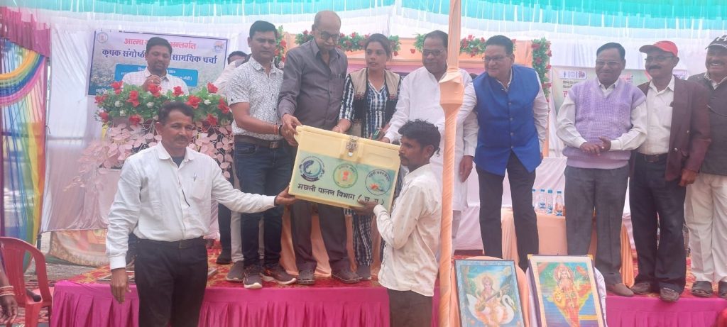 भाटापारा 21 दिसंबर/सरकार गठन के एक वर्ष पूर्ण होने के उपलक्ष्य मे कलेक्टर दीपक सोनी के मार्गदर्शन में सभी विकासखण्ड मुख्यालयों एवं 161 सहकारी समितियों तथा धान उपार्जन उप केन्द्रों में कृषि एवं सहकारिता विभाग के संयुक्त तत्वाधान में किसान सम्मेलन का आयोजन किया गया। जिसमें कृषि एवं समवर्गीय विभागों के द्वारा विभिन्न केन्द्र एवं राज्य पोषित योजनाओं की जानकारी किसानों को दी गई। साथ ही प्रगतिशील किसानों को सम्मानित भी किया गया। कार्यक्रम में कृषि विज्ञान केन्द्र भाटापारा के वैज्ञानिकों द्वारा रबी फसलों हेतु कीटव्याधि नियंत्रण के उपाय एवं सम-सामयिक तकनीकी जानकारी प्रदान की गई। उक्त कार्यक्रम विकासखण्ड बलौदाबाजार के धान उपार्जन केन्द्र (कृषि उपज मण्डी परिसर) बलौदाबाजार में मुख्य अतिथि माननीय मंत्री खेलकूद एवं युवा कल्याण तथा आपदा प्रबंधन के प्रतिनिधि के रुप में मदन वर्मा एवं अन्य जनप्रतिनिधि गण उपस्थित हुए। विकासखण्ड पलारी में धान उपार्जन केन्द्र (कृषि उपज मण्डी परिसर) पलारी में किसान सम्मेलन आयोजित हुआ,जिसमें मुख्य अतिथि के रुप में योगेश चंद्राकर, पूर्व अध्यक्ष जिला सहकारी केन्द्रीय बैंक, खिलेन्द्र वर्मा जनपद अध्यक्ष पलारी, विपीन बिहारी वर्मा, तेजराम वर्मा एवं अन्य जनप्रतिनिधि उपस्थित हुए। विकासखण्ड भाटापारा में प्राथमिक कृषि साख सहकारी समिति गोढ़ी ‘टी’ में माननीय शिवरतन शर्मा पूर्व विधायक भाटापारा, भागमति ध्रुव जिला पंचायत सदस्य बलौदाबाजार, युगलकिशोर साहू अध्यक्ष सहकारी समिति गोढ़ी ‘टी’ उपस्थित हुए। विकासखण्ड सिमगा के धान उपार्जन केन्द्र (कृषि उपज मण्डी परिसर) सिमगा में अनिल पाण्डेय,श्री केजुराम बघेल एवं विकासखण्ड कसडोल के प्राथमिक कृषि साख सहकारी समिति, मोहतरा में माननीय डॉ. सुदीप दास मानिकपुरी की अध्यक्षता में कार्यक्रम आयोजित किया गया। कार्यक्रम सहकारी समिति के अध्यक्ष, सदस्य, प्रबंधक एवं कृषकों की उपस्थिति में सम्पन्न हुआ। बलौदाबाजार मंडी परिसर में आयोजित किसान सम्मेलन में कृषि विभाग द्वारा 31 किसानों को प्रधानमंत्री किसान सम्मान निधि प्रशस्ति पत्र, 3 किसानों को किसान समृद्धि योजनान्तर्गत चेक वितरण, 20 किसानों को स्वायल हेल्थ कार्ड वितरण, 5 किसानों को मूंग बीज का वितरण, मत्स्यपालन विभाग द्वारा 2 मछुवारा समितियों को जाल, 7 हितग्राहियों को आईस बॉक्स, उद्यान विभाग द्वारा 10 किसानों को पौध वितरण, सहकारिता विभाग द्वारा 3 किसानों को माईक्रो एटीएम कार्ड एवं शासन के निर्देशानुसार धान बेचने वाले सभी किसानों को माननीय मुख्यमंत्री जी का पत्र (विष्णु की पाती) 60000 नग का वितरण विकासखण्ड स्तर एवं सहकारी समितियों के माध्यम से किया गया। विकासखण्ड मुख्याल