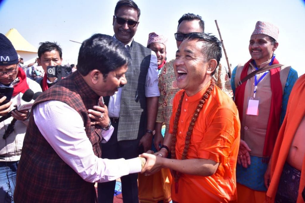 प्रयागराज। महाकुंभ नगर, धर्म, आस्था और अध्यात्म के महासंगम महाकुंभ 2025 में सम्मिलित होने के लिए सिक्किम के मुख्यमंत्री प्रेम सिंह तमांग महाकुंभ पहुंचे। उत्तर प्रदेश सरकार की ओर से औद्योगिक विकास मंत्री नन्द गोपाल गुप्ता नन्दी ने उनका आत्मीय स्वागत किया।