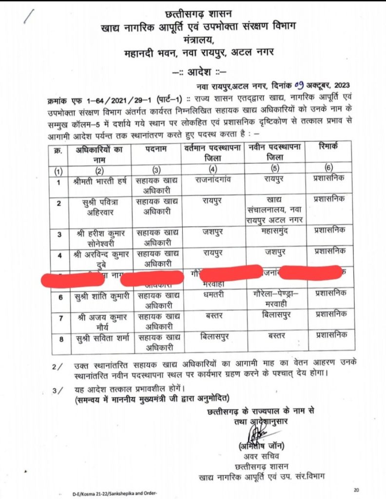 प्रभारी खाद्य नियंत्रक अरविंद दुबे की एक मामले में स्टेशन रोड की एक दुकान फर्जी संस्था को देने की अनुशंसा करने शिकायत संचालक तक हो चुकी है। इसके बाद भी अब संचालक द्वारा दागी अफसर रायपुर का खाद्य नियंत्रक बना दिया गया।