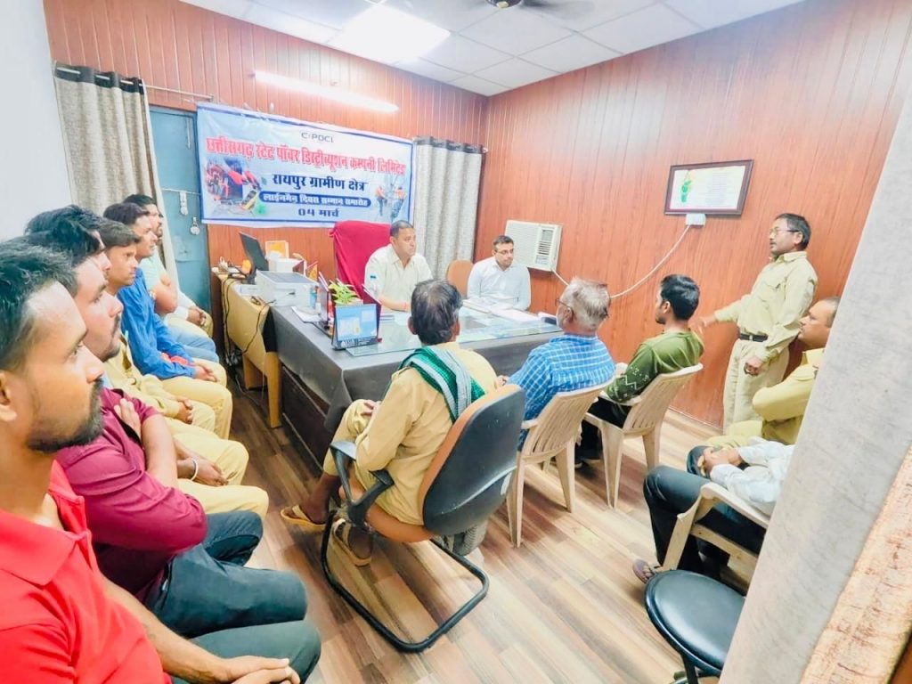 रायपुर,आज दिनांक 4 मार्च 2025 को रायपुर संभाग के अंतर्गत आमासिवनी वितरण केंद्र में लाइनमैन दिवस समारोह आयोजित किया गया उक्त कार्यक्रम में रायपुर संभाग के अंतर्गत आने वाले 10 वितरण केंद्र एवं तीन उप संभाग के समस्त कर्मचारी एवं अधिकारी उपस्थित थे उक्त कार्यक्रम में सभी लाइनमैनों को सम्मानित किया गया एवं विभाग के  प्रति उनके निस्वार्थ त्याग एवं समर्पण के लिए उनका धन्यवाद किया गया ।कार्यक्रम में सभी लाइनमैनों को सुरक्षा से कार्य करने हेतु शपथ दिलाया गया ,कार्यपालन अभियंता  द्वारा उनके सभी सुरक्षा कारणों की जाँच की गई*।
