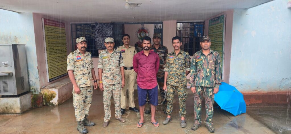 गिरफ्तार आरोपी सेवन गोंड पिता दशरू गोंड उम्र 23 वर्ष जाति मरकाम निवासी संबलपुर थाना कुंदई जिला नवरंगपुर (उड़ीसा)