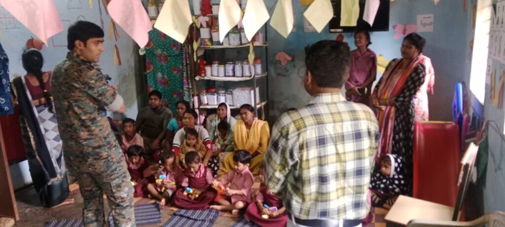 पुलिस अधीक्षक ने इस दौरान बच्चों को फल बिस्किट एवं खिलौना भी वितरण किया गया। आंगनबाड़ी केन्द्र में आने वाले बच्चों के अभिभावकों से भी चर्चा किए और कहा कि आंगनबाड़ी केन्द्र समुदाय का है। केन्द्र को स्वच्छ रखना एवं प्रतिदिन बच्चों को केन्द्र भेजने एवं समय-समय पर केन्द्र का निरीक्षण करें। आँगनबाड़ी कार्यकर्ता ने अवगत कराया कि केंद्र में पानी की समस्या है जिसे पुलिस अधीक्षक ने सम्बंधित अधिकारी को जल्द निराकरण करने के निर्देश दिए। इस दौरान पुलिस अधीक्षक ने आंगनबाड़ी कार्यकर्ता एवं सहायिका को आंगनबाड़ी केन्द्र के परिसर को साफ-सफाई रखने एवं बच्चे प्रतिदिन गणवेश में केन्द्र में आयें इस बात का ध्यान रखने के निर्देश दिये। इस दौरान जिला बाल संरक्षण अधिकारी, पर्यवेक्षक उपस्थित रहे।