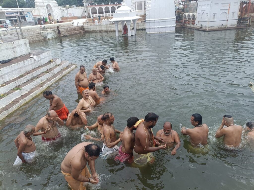 अमरकंटक – मां नर्मदा जी की उद्गम स्थली/पवित्र नगरी अमरकंटक के उद्गम कुंड और रामघाट तट पर  श्रावण मास की पूर्णिमा पर श्रावणी पर्व का भव्य धार्मिक एवं आध्यात्मिक आयोजन किया गया । यह आयोजन श्रावण नक्षत्र की पूर्णिमा , संस्कृत दिवस , नारियल पूनम और रक्षाबंधन पर्व के साथ इस वर्ष शनिवार 9 अगस्त 2025 को संपन्न हुआ ।