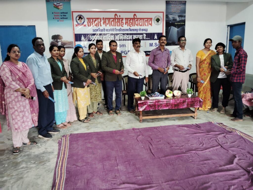 *बेलगहना ग्लोबल न्यूज प्रदीप शर्मा की रिपोर्ट*आज सरदार भगत सिंह महाविद्यालय बेलगहना में शाला प्रवेश उत्सव बड़े धूमधाम से मनाया गया जिसमें श्री रंजीत सिंह पवार, सचिव शिवाजी राव शिक्षा संस्थान के द्वारा नव प्रवेशित छात्र-छात्राओं का स्वागत करते हुए उन्हें उपहार प्रदान किया गया साथ ही छात्र जीवन में शिक्षा के महत्व को बहुत ही खूबसूरती से समझाया गया। सरदार भगत सिंह महाविद्यालय बेलगहना जो की शिवाजी राव शिक्षा संस्थान की एक शाखा है तथा अटल बिहारी वाजपेई विश्वविद्यालय बिलासपुर से सम्बद्ध है, पिछले 5 वर्षों से सफलतापूर्वक B.A., B.Com. BSc. M.A. M.Sc. PGDCA एवं DCA जैसे महत्वपूर्ण विषयों का संचालन करता आ रहा है।