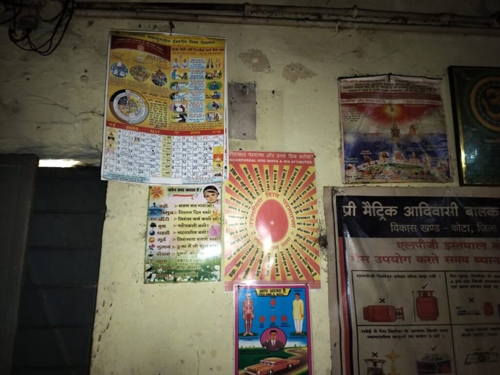 छात्रावास में पाठ्यपुस्तकों और शैक्षिक चार्ट की जगह धार्मिक व विचित्र संदेशों वाले पोस्टर लगाए गए हैं। इनमें “ठ – ठोकर खाकर ठाकुर बनते हैं”, “द – दिलाराम बाप को दिल में समा लो”, “श – शीतला देवी बनो”, “ढ – ढिंढोरा पीटो, परमात्मा आ चुके हैं”, “व – वाह बाबा वाह, ड्रामा करो” जैसे संदेश शामिल हैं।
