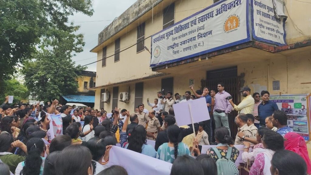 छत्तीसगढ़ के रायगढ़ जिले में राष्ट्रीय स्वास्थ्य मिशन (एनएचएम) के 518 संविदा स्वास्थ्य कर्मचारियों ने आज सामूहिक त्यागपत्र देकर शासन की अनदेखी और दमनकारी नीतियों के खिलाफ अपना रोष जाहिर किया है। विगत 18 अगस्त से हम अपनी 10 सूत्री मांगों को लेकर लोकतांत्रिक ढंग से, संविधान प्रदत्त अधिकारों के दायरे में आंदोलनरत हैं। 160 से अधिक बार ज्ञापन देने के बावजूद शासन की चुप्पी ने हमें यह कठोर कदम उठाने को मजबूर किया है।