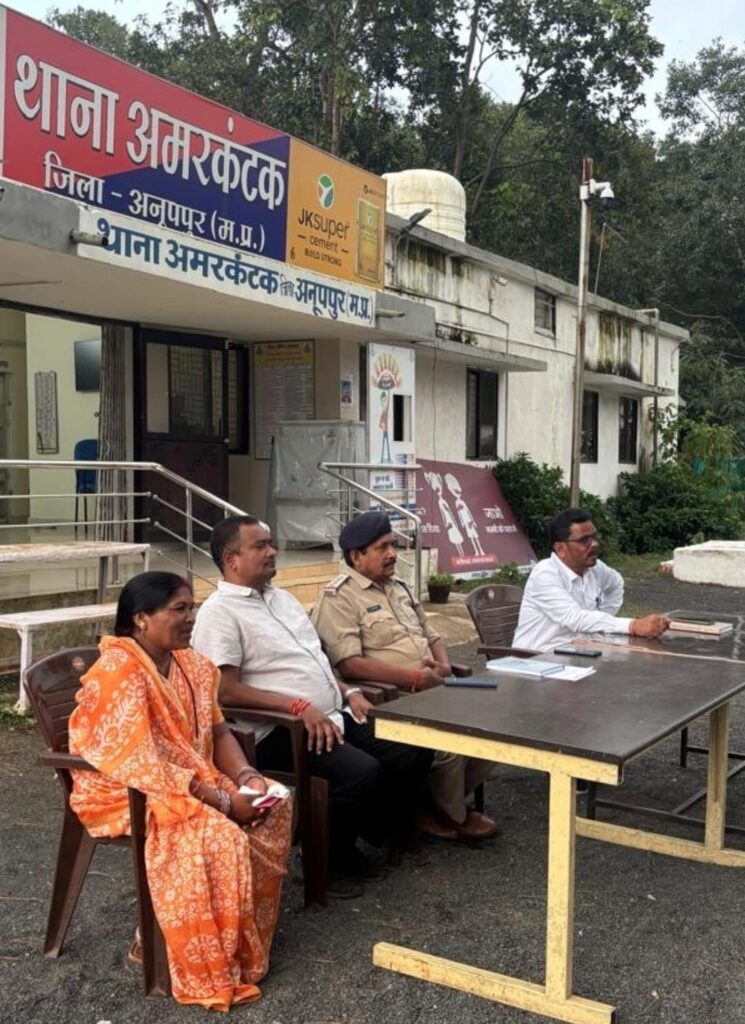 *अमरकंटक*  –  मां नर्मदा की उद्गम स्थली पवित्र नगरी अमरकंटक में आगामी दुर्गा उत्सव को लेकर थाना अमरकंटक परिसर में शांति समिति की बैठक शुक्रवार 19/09/25 को आयोजित की गई । बैठक की अध्यक्षता नगर परिषद अध्यक्षा श्रीमती पार्वती सिंह उइके ने की । इस अवसर पर थाना प्रभारी लाल बहादुर सिंह तिवारी , नगर परिषद सीएमओ चैन सिंह परस्ते , पटवारी भूपेंद्र सिंह , पूर्व मंडल अध्यक्ष रोशन पनारिया , पार्षद जोहान लाल चंद्रवंशी , शक्तिशरण पांडेय , दिनेश साहू , सूरज साहू , गोलू द्विवेदी , धनंजय तिवारी , प्रेमलाल प्रजापति , रितिक अग्रवाल , विपुल वर्मन , दुर्गा पंडालों के अध्यक्ष एवं  उपाध्यक्ष सहित नगर के गणमान्य नागरिक के अलावा भारी संख्या में लोग उपस्थित रहे ।