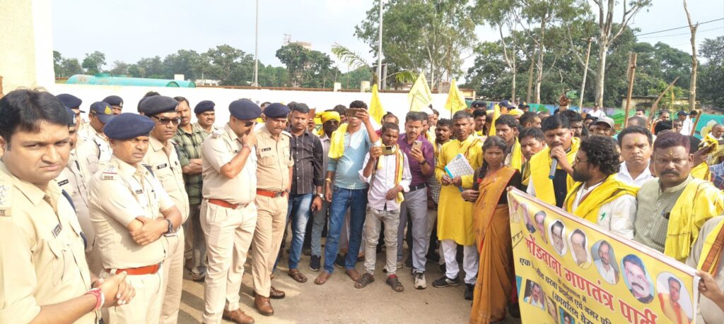 करीब दो घंटे तक चली सभा के बाद गोंडवाना गणतंत्र पार्टी के कार्यकर्ता नारेबाजी करते हुए नगर परिषद कार्यालय पहुंचे और वहां प्रशासन के खिलाफ प्रदर्शन कर