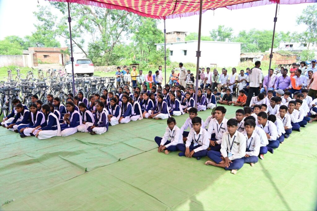 साथ ही विद्यार्थीओ को शुभकामना देते हुए उनके उज्ज्वल भविष्य की कामना की. इस पर छात्राओं द्वारा साइकिल की घंटी बजाकर बच्चों ने अपनी खुशी जाहिर की.उक्त कार्यक्रम में जिला उपाध्यक्ष सुनील यदु, सरपंच प्रतिनिधि गजानंद मरावी, दिनेश साहू, पवन साहू, भरत साहू, युगल साहू, विद्यालय के प्राचार्य विपिन दुबे सहित बड़ी संख्या में ग्रामवासी एवं शाला परिवार के लोग उपस्थित थे..