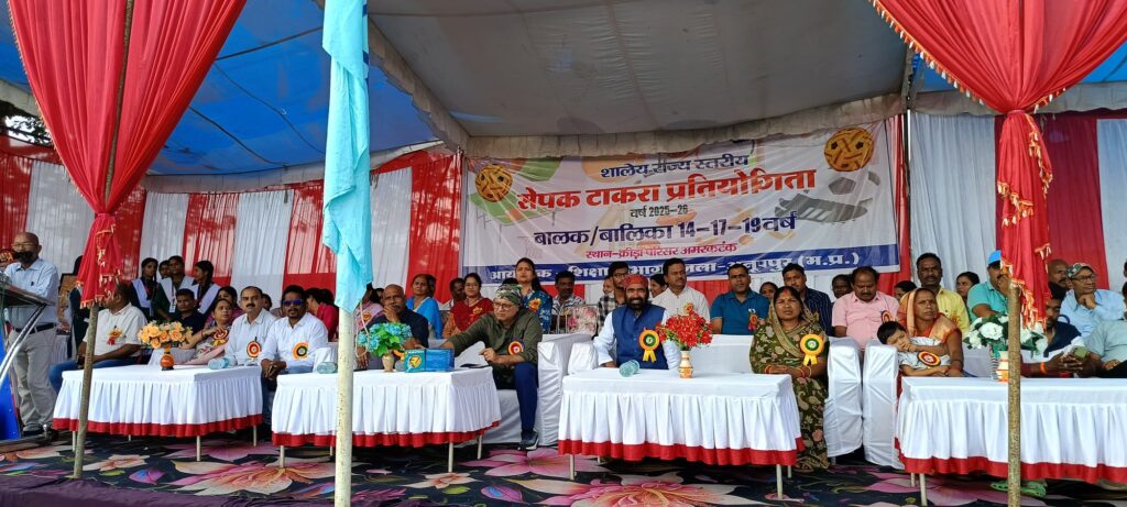 ///अमरकंटक///– मां नर्मदा की उद्गम स्थली / पवित्र नगरी अमरकंटक की पावन धरा पर बुधवार को एक नया इतिहास रचा गया । जिला शिक्षा विभाग अनूपपुर के तत्वावधान में 69वीं राज्य स्तरीय शालेय सेपक टाकरा प्रतियोगिता का शुभारंभ अमरकंटक के बालक/कन्या क्रीड़ा परिसर में बड़े ही हर्षोल्लास और भव्यता के साथ खेल प्रतियोगिता का आरंभ हुआ । यह प्रतियोगिता आगामी 8 अक्टूबर से 11अक्टूबर 2025 तक चलेगी , जिसमें प्रदेश भर से प्रतिभाशाली छात्र-छात्राएँ अपनी खेल क्षमता का प्रदर्शन करेंगे ।