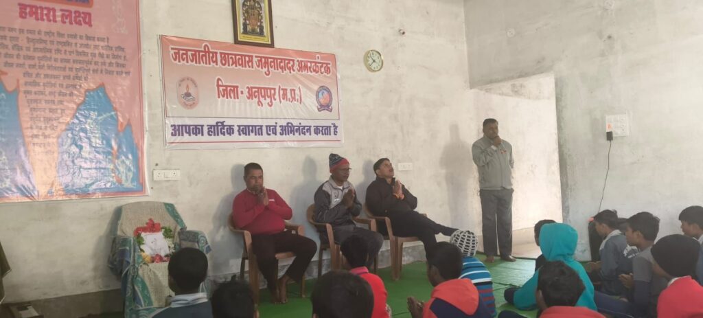 अमरकंटक – मां नर्मदा जी की उद्गम स्थली/पवित्र नगरी अमरकंटक में जनजातीय गौरव दिवस के अवसर पर सरस्वती विद्यालय के संस्कार केंद्र एवं जनजाति छात्रावास अमरकंटक में भगवान बिरसा मुंडा जी की जयंती को श्रद्धा और उत्साह के साथ मनाई गई । इस दौरान विद्यार्थियों एवं गुरुजनों ने भगवान बिरसा मुंडा के चित्र पर माल्यार्पण कर उनके संघर्ष , त्याग और जनहित के लिए किए गए कार्यों को स्मरण किया । कार्यक्रम में आदिवासी संस्कृति , परंपराओं और बिरसा मुंडा जी के आदर्शों पर प्रेरणादायी विचार भी साझा किए गए ।