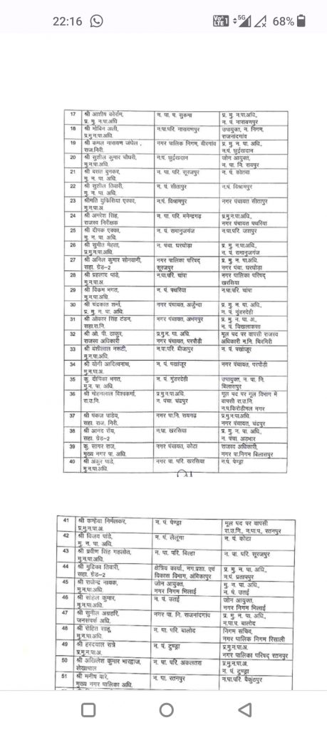 छत्तीसगढ़ नगरी प्रशासन विभाग के सीएमओ इंजीनियर ट्रांसफर लिस्ट देखें