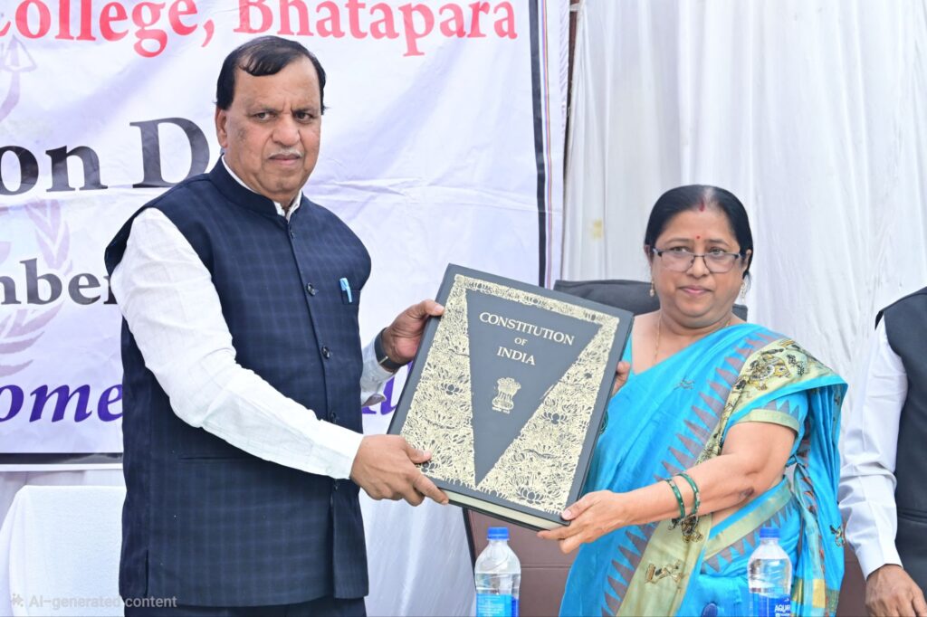 भाटापारा 26 नवंबर/ 76वें संविधान दिवस के अवसर पर भाटापारा गोविंद सारंग विधि महाविद्यालय में आयोजित संविधान दिवस कार्यक्रम में वरिष्ठ भाजपा नेता छत्तीसगढ़ शिवरतन शर्मा एवं जिला कलेक्टर दीपक सोनी सम्मिलित हुए..जहा शिवरतन शर्मा द्वारा महाविद्यालय परिवार को संविधान की बड़ी सी किताब भेंट की गई..