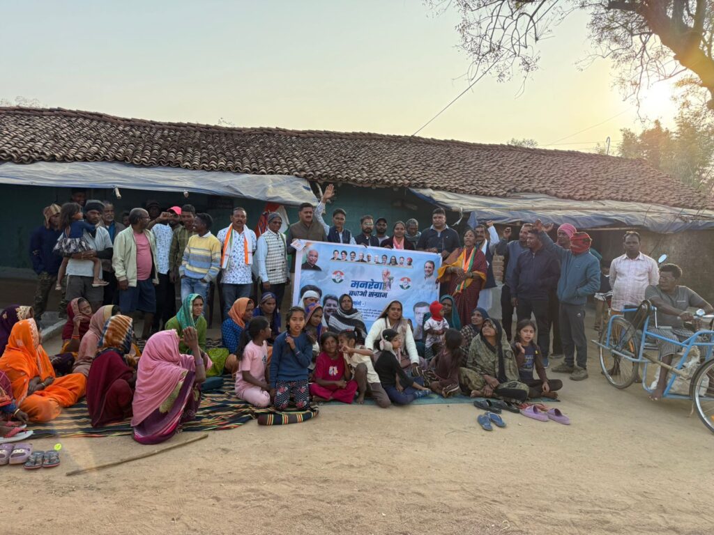 कार्यक्रम के दौरान वरिष्ठ नेता गुलाब राज ने कहा ग्रामीणों ने अपने अनुभव साझा करते हुए बताया कि समय पर मजदूरी नहीं मिलने से परिवारों की आर्थिक स्थिति पर गंभीर असर पड़ रहा है। नेताओं और कार्यकर्ताओं ने आश्वासन दिया कि मनरेगा को बचाने और मजबूत करने के लिए संघर्ष जारी रहेगा तथा ग्रामीणों की मांगों को शासन-प्रशासन तक पहुंचाया मुद्रिका सर्राटी ने कहा की मनरेगा के तहत काम के दिन घटाए जा रहे हैं और भुगतान में भारी देरी हो रही है। इससे ग्रामीण परिवारों की आजीविका पर सीधा असर पड़ा है। कांग्रेस पार्टी जनता के साथ खड़ी है और इस अन्याय के खिलाफ आवाज बुलंद करेंगे किसान कांग्रेस केनप्रसेश महामंत्री मनीष दुबे ने कहा मनरेगा केवल रोजगार नहीं बल्कि ग्रामीण विकास का आधार है। यदि इसे कमजोर किया गया तो पलायन और बेरोजगारी और बढ़ेगी। पंचायत स्तर पर जागरूकता फैलाना आज की सबसे बड़ी जरूरत है। श्रीकांत मिश्रा मंडी पूर्व उपाध्यक्ष और राष्ट्रीय सह सचिव प्रीति मांझी ने भी चौपाल को संबोधित करते हुए कहा कि मनरेगा में पारदर्शिता, समय पर भुगतान और 200 दिन रोजगार की मांग को लेकर यह आंदोलन आगे भी जारी रहेगा। उन्होंने ग्रामीणों से एकजुट होकर अपने अधिकारों के लिए आवाज उठाने का आह्वान किया। कार्यक्रम के दौरान ग्रामीणों ने अपनी समस्याएं रखीं, जिनमें मजदूरी भुगतान में देरी, काम की कमी और तकनीकी अड़चनों की शिकायतें प्रमुख रहीं। कांग्रेस नेताओं ने भरोसा दिलाया कि इन मुद्दों को प्रशासन और सरकार के समक्ष मजबूती से उठाया जाएगा। अंत में मनरेगा बचाओ संग्राम को जन आंदोलन का रूप देने का संकल्प लिया गया और आने वाले दिनों में अन्य पंचायतों में भी इसी तरह के चौपाल कार्यक्रम आयोजित करने की घोषणा की गई। चौपाल में मनरेगा के तहत 100 दिन का रोजगार सुनिश्चित करने, लंबित भुगतान शीघ्र कराने, जॉब कार्डधारियों को नियमित काम देने और मजदूरी दर बढ़ाने की मांग प्रमुखता से उठाई गई। कार्यक्रम के अंत में ग्रामीणों ने एकजुट होकर मनरेगा बचाओ संग्राम को समर्थन देने का संकल्प लिया। कार्यक्रम में गजमती भानु जिलाध्यक्ष गुलाब राज मुद्रिका सर्राटी कामता राठौर पंकज तिवारी सविता राठौर सुनीता टिमोथी मनीष दुबे श्रीकांत मिश्रा प्रीति मांझी कौशल राठौर सुरेंद्र कालीराम मांझी लालचंद सोनवानी राहुल नागेश सेमलाल भैना आलोक सुकला दिनेश कश्यप संतोष ठाकुर सुकेश तिवारी कांग्रेस कार्यकर्ता सहित बड़ी संख्या में ग्रामीण, मनरेगा मजदूर, सामाजिक कार्यकर्ता एवं पंचायत प्रतिनिधि उपस्थित थे ।