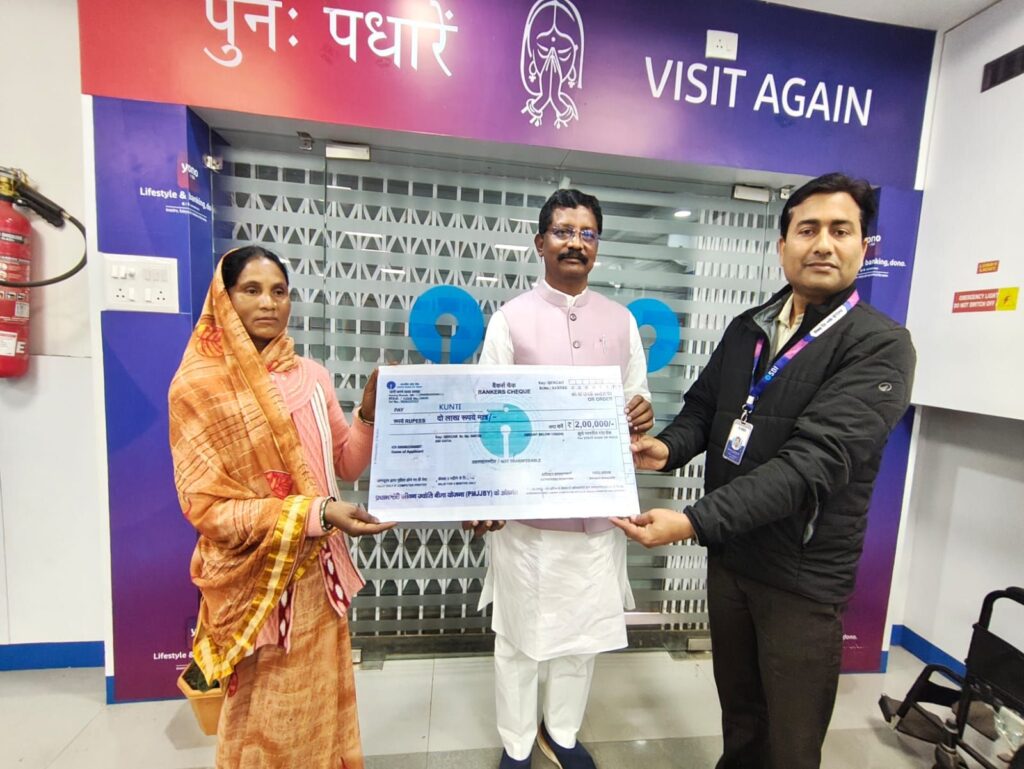 इसी दौरान जानकारी मिली कि स्वर्गीय अमीन सिंह कुशराम ने अपने जीवनकाल में भारतीय स्टेट बैंक भेजरी कियोस्क शाखा में खोले गए खाते से प्रधानमंत्री जीवन ज्योति बीमा योजना के अंतर्गत मात्र 436 रुपये वार्षिक प्रीमियम पर बीमा कराया था । इसके बाद विधवा श्रीमती कुंती बाई अपने पुत्र-पुत्री के साथ पवित्र नगरी अमरकंटक स्थित भारतीय स्टेट बैंक शाखा पहुँचीं जहाँ शाखा प्रबंधक गौरव उपाध्याय ने खाते से संबंधित बीमा की पुष्टि की और आवश्यक दस्तावेज जमा कराने को कहा ।