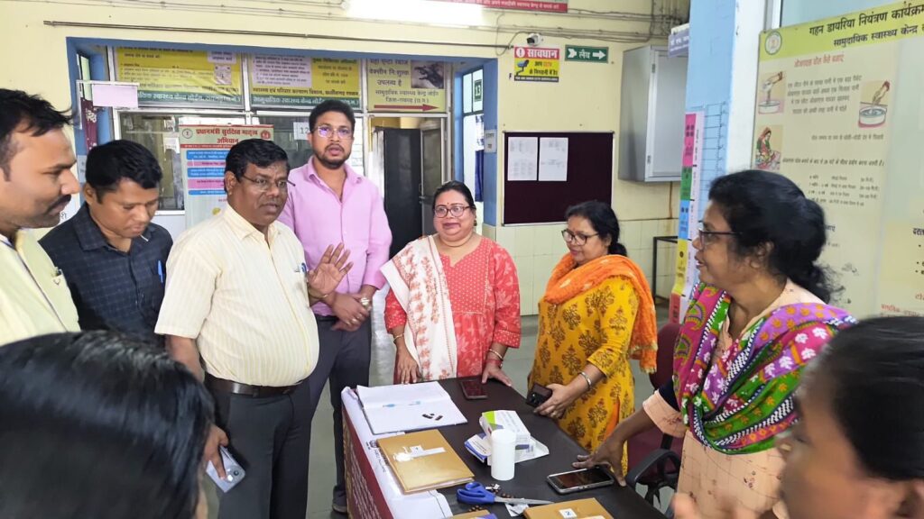 कलेक्टर रायगढ़ मयंक चतुर्वेदी के मार्गदर्शन एवं मुख्य चिकित्सा एवं स्वास्थ्य अधिकारी के निर्देशन में जिला फाइलेरिया अधिकारी डॉक्टर टी.जी. कुलवेदी एवं जिला टीम द्वारा आज सामुदायिक स्वास्थ्य केंद्र लोइंग में ‘सामूहिक दवा सेवन (MDA) अभियान’ का सघन निरीक्षण किया गया। निरीक्षण के दौरान टीम ने दवा वितरण केंद्रों की व्यवस्थाओं का जायजा लिया और स्वास्थ्य कर्मियों को आवश्यक दिशा-निर्देश दिए।