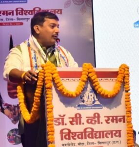 • इस अवसर पर विश्वविद्यालय के कुलपति प्रोफेसर प्रदीप कुमार घोष ने कहा कि डॉ सीवी रमन विश्वविद्यालय केवल शिक्षा ही नहीं जीवन संस्कृति सभ्यता लोक कला लोक व्यवहार की जानकारी भी देता है।