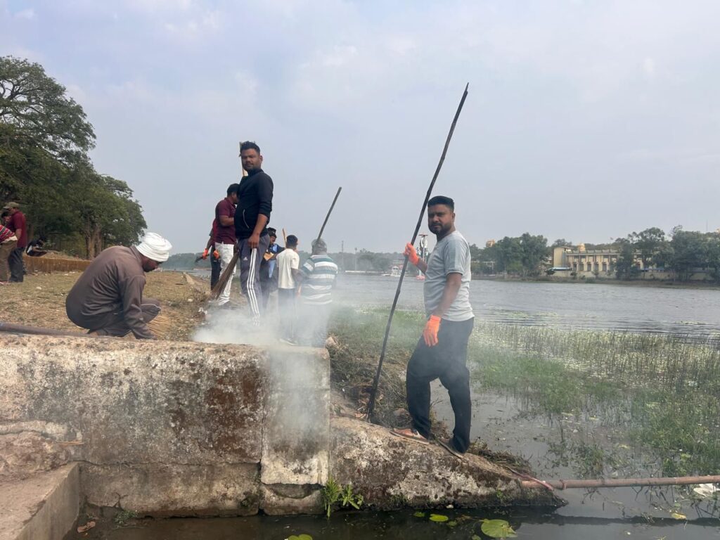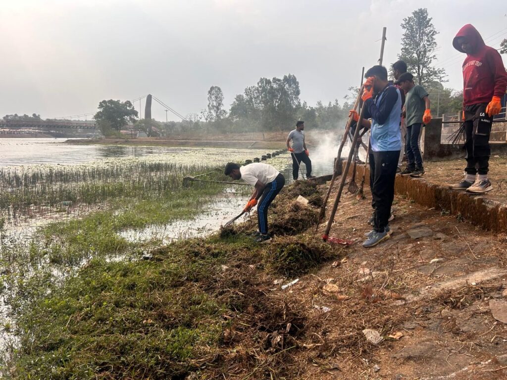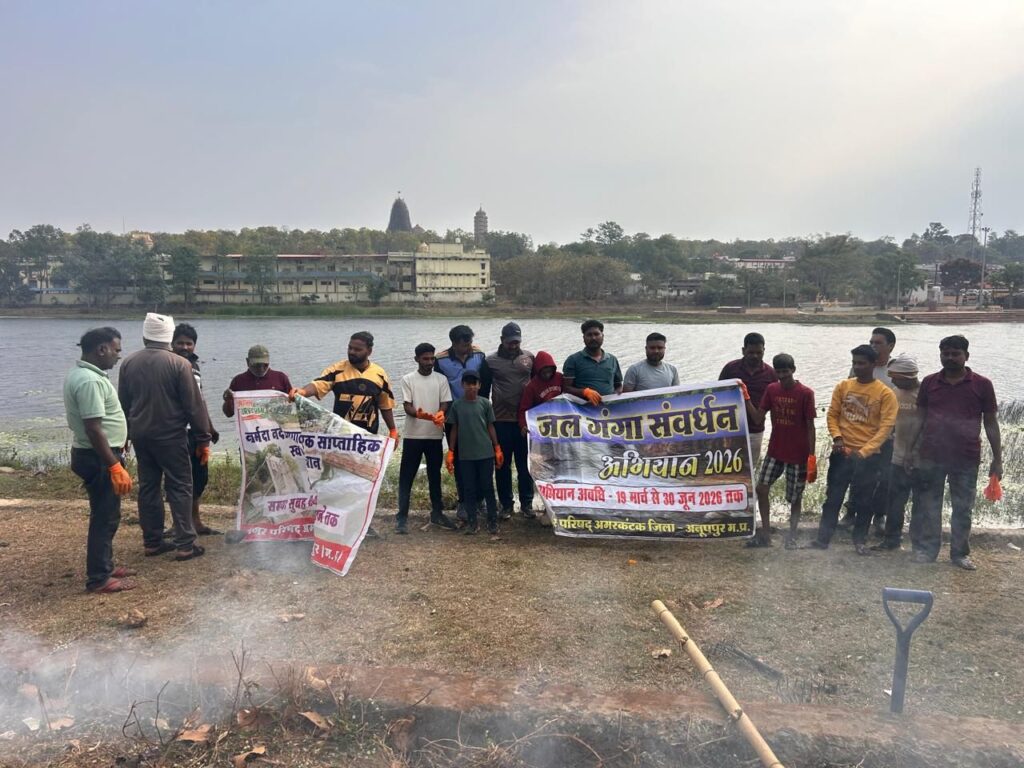 अमरकंटक – मां नर्मदा जी की उद्गम स्थली/पवित्र नगरी अमरकंटक में भी मध्य प्रदेश शासन की अभिनव कार्यक्रम के तहत एवं जिला प्रशासन के दिशा-निर्देशानुसार संचालित ‘जल गंगा अभियान’ के अंतर्गत नर्मदा नदी के पुष्कर बांध के दक्षिण तट पर विशेष स्वच्छता अभियान चलाया जा रहा । इस दौरान नदी तट पर फैले कचरे , घास एवं जलकुंभी को हटाकर जल स्रोतो को स्वच्छ और संरक्षित करने का प्रयास किया जा रहा ।