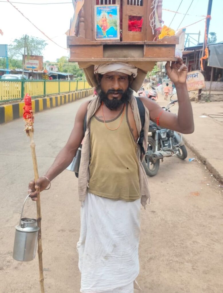 सिर पर मंदिर रखकर नर्मदा परिक्रमा कर रहे महाराष्ट्र के प्रीतपाल , अनूठी साधना बनी प्रेरणा