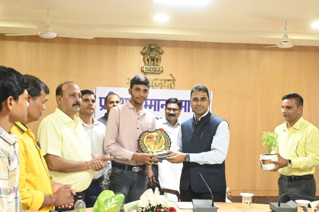 भाटापारा 30 अप्रैल/बलौदाबाजार शिक्षा सत्र 2025- 26 में जिले के होनहार छात्रों ने 10 वीं और 12 वी कक्षा में उत्कृष्ट प्रदर्शन किया। कक्षा 12 वीं में पलारी के लाल जिज्ञासु वर्मा ने स्टेट टॉपर बनकर इतिहास रचा और जिले का मान बढ़ाया। गुरूवार को जिला प्रशासन द्वारा संयुक्त जिला कार्यालय के सभाकक्ष में प्रतिभा सम्मान समारोह का आयोजन किया गया जिसमें कलेक्टर कुलदीप शर्मा ने कक्षा 10 वीं और 12 वीं के 11 मेधावी छात्रों को मोमेंटो और पौधा देकर सम्मानित किया।