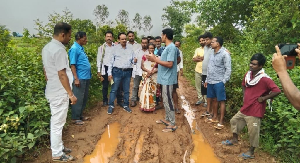 कापसी के हरविलास पारा के दलदल सड़क पर चलना हुआ दुभर, ग्रामीणों ने पूर्व विधायक मंतू राम पवार से की शिकायत