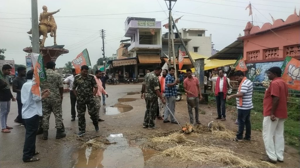 भाजपा युवा मोर्चा एवं भारतीय जनता पार्टी के पखांजूर मंडल द्वारा स्वास्थ्य कर्मचारियों को बर्खास्त करने के विरोध में पुराना बाजार नेताजी चौक पर मुख्यमंत्री भूपेश बघेल का पुतला जलाया।