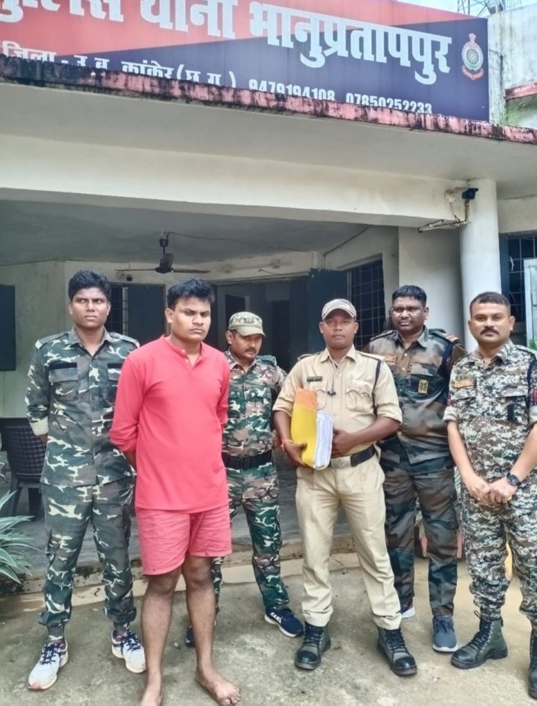 पुलिस अधीक्षक दिव्यांग पटेल के मार्गदर्शन में और अतिरिक्त पुलिस अधीक्षक अविनाश ठाकुर तथा एसडीओपी भानु प्रतापपुर प्रशांत पैकेरा सर के मार्गदर्शन में भानुप्रतापपुर पुलिस के द्वारा कार्यवाही करते हुए नौकरी लगने के नाम पर 21 लाख रुपए लेकर धोखाधड़ी करने वाले आरोपी करण सिंह चक्रधारी उर्फ करण पांडे पिता मंकू राम उम्र 28 वर्ष निवासी वही गांव जिला कोंडागांव के द्वारा थाना भानु प्रतापपुर क्षेत्र की पांच लोगों को फॉरेस्ट विभाग में नौकरी लगाने के नाम पर कुल 21 लाख रुपए लेकर धोखाधड़ी कर नौकरी ना लगवा कर फरार होने की सूचना पर थाना भानुप्रतापपुर पुलिस के द्वारा अपराध क्रमांक 59 /2023 धारा 420 ,419 ,467, 46,8 471 भारतीय दंड संहिता का पंजीबद्ध कर विवेचना किया जा रहा था। विवेचना के दौरान आरोपी अपने सकुनत से फरार चल रहा था जिस पर पुलिस टीम के द्वारा लगातार तकनीकी एकत्रित कर प्रशांत पर कर के सतत मार्गदर्शन में निरंतर आरोपी के लोकेशन की जानकारी लेकर दिनांक 16 /9 /2023 को आरोपी को महासमुंद जिले के सरायपाली से गिरफ्तार किया गया। आरोपी के द्वारा प्रार्थियों से की गई धोखाधड़ी की राशि को अपने शादी और विभिन्न घूमने फिरने के कार्यों में खर्च कर दिया जाना बताया गया आरोपी के कब्जे से प्रार्थियो से धोखाधड़ी की गई राशि में से खरीदी गई बाइक और मोबाइल की जप्त किया गया। आरोपी को गिरफ्तार कर माननीय न्यायालय के समक्ष प्रस्तुत किया गया जिनके आदेश पर आरोपी को जेल दाखिल कर दिया गया।