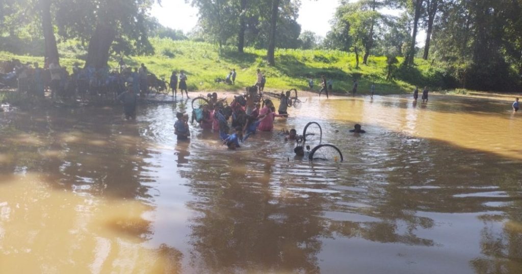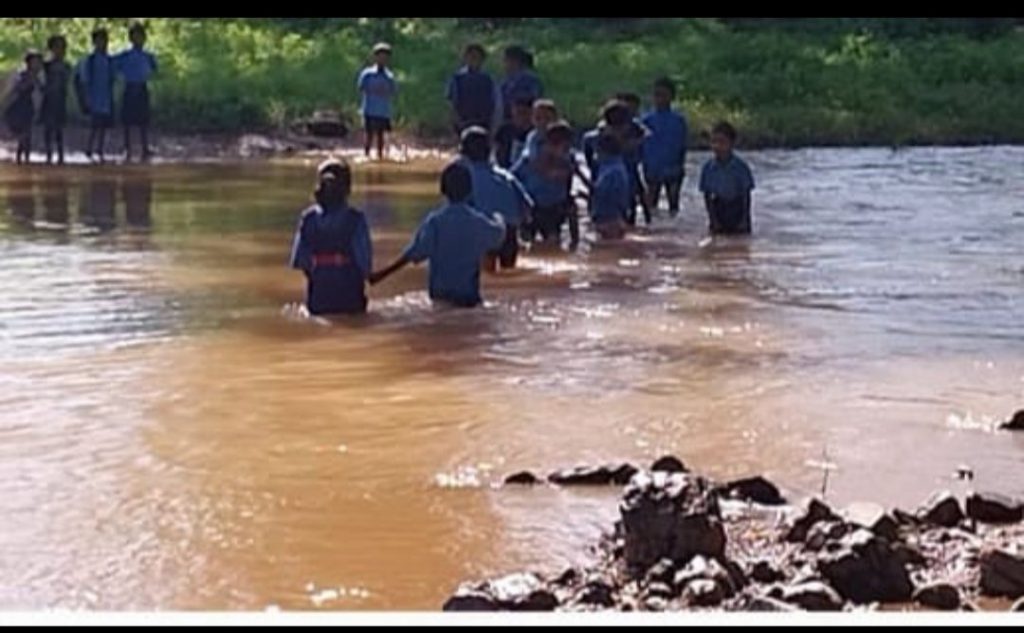 *स्कूली बच्चे जान जोखिम में डालकर उफनती नदी पार कर पहुंचते हैं स्कूल.*