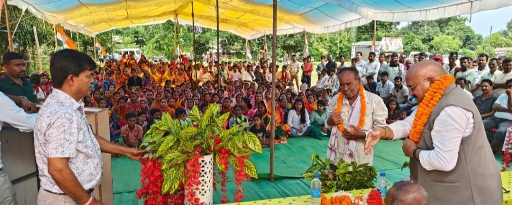 कांग्रेस पार्टी का गमछा पहनाकर विधिवत रूप से विधायक नाग ने सभी को कांग्रेस में कराया प्रवेश