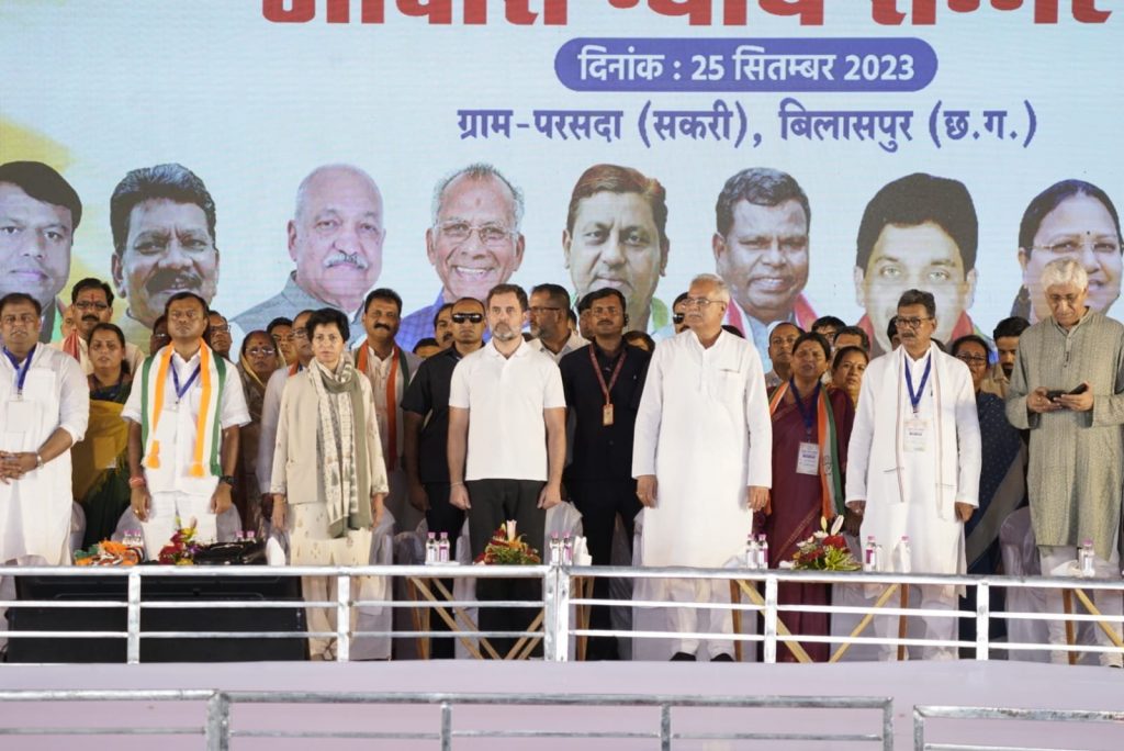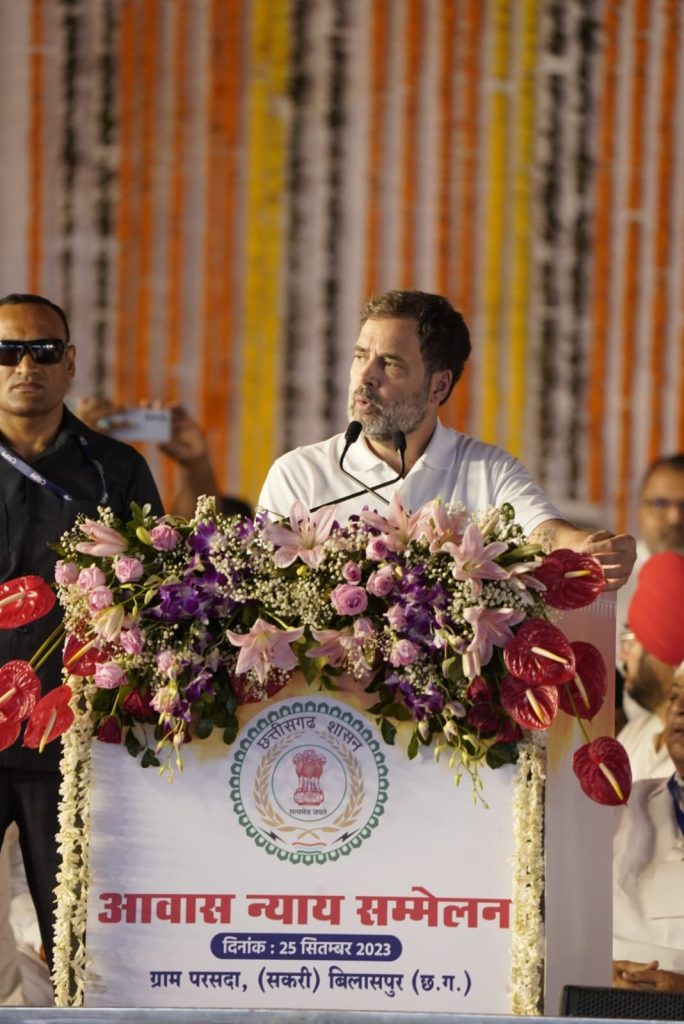 बिलासपुर, 25 सितंबर, 2023/सांसद श्री राहुल गांधी ने कहा है कि जातिगत जनगणना हिंदुस्तान का एक्सरे है। जिस तरह एक्सरे के उपयोग से हम शरीर के बारे में जान सकते हैं और खामियां जानकर उसे दुरूस्त कर सकते हैं उसी प्रकार से जातिगत जनगणना के आंकड़ों से हम सभी वर्गों के विकास के लिए बेहतर रणऩीति बना सकते हैं। सांसद श्री राहुल गांधी आज बिलासपुर के परसदा में आयोजित आवास न्याय सम्मेलन को संबोधित कर रहे थे। सांसद श्री राहुल गांधी और मुख्यमंत्री श्री भूपेश बघेल ने इस मौके पर ’छत्तीसगढ़ ग्रामीण आवास न्याय योजना’ का शुभारंभ किया।