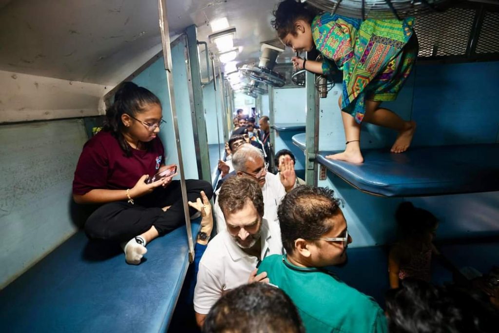 ***एवं सांसद राहुल गांधी ने कार्यक्रम के बाद बिलासपुर से रायपुर इंटरसिटी एक्सप्रेस से स्लीपर कोच में यात्रा भी की साथ में मुख्यमंत्री भूपेश बघेल एवं कुमारी शैलजा एवं अन्य नेता भी साथ में थे राहुल गांधी ने घूम घूम कर स्लीपर कोच में लोगों से मुलाकात कि***