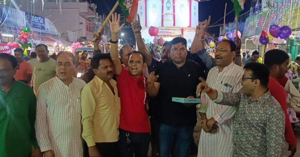 समर्थकों ने पटाखे फोड़ मिठाई बाँट कर जताई खुशियां