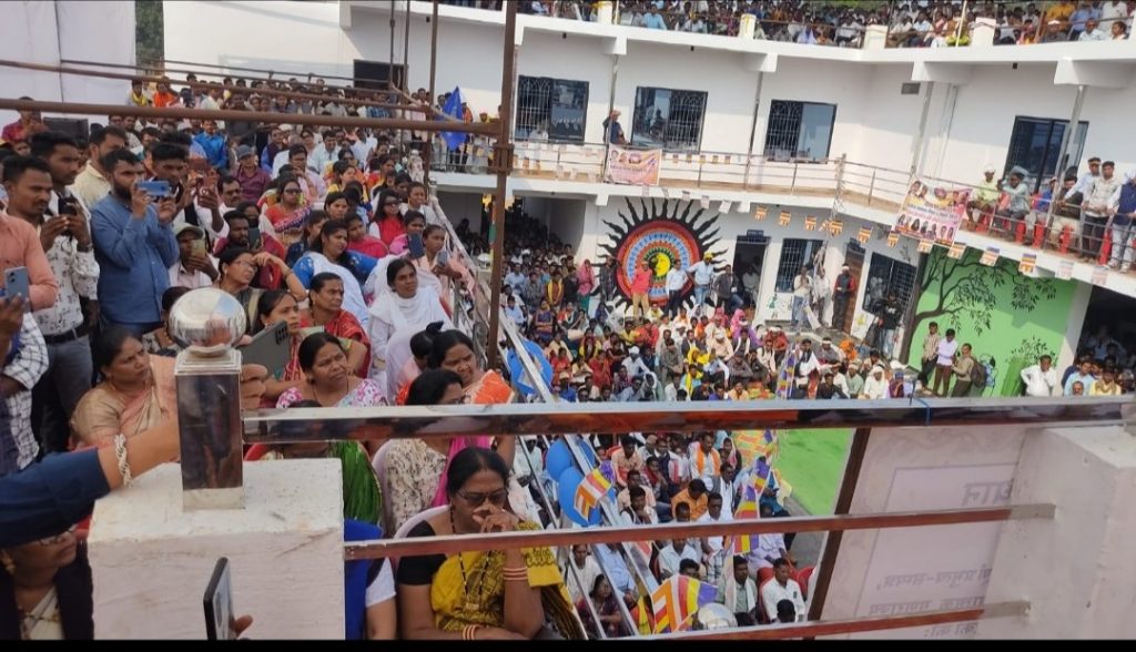 कोण्डागांव 27 नवम्बर । भारत के संविधान की रक्षा व सम्मान पर बात करने के लिए 26 नंवबर 2023 को बस्तर संभाग के हृदय स्थल कोंडागांव में ’भारतीय संविधान दिवस’ जो तमाम प्रशासनिक बाधाओं एवं कुछ संविधान विरोधी ताकतों के षडयंत्रों के बावजूद ’बाबा साहब सेवा संस्था’ कोंडागाव के संविधान के प्रति दृढ़ निष्ठा व समाज समुदायों को जागृत करने के उद्देश्य से आयोजित ’भारतीय संविधान दिवस’ को सफलतापुर्वक मनाया गया। उक्त उद्देश्य परख आयोजन के ’मुख्य अतिथी’ ओबीसी समाज के अंतर्राष्टीय वक्ता प्रोफेसर ’डाॅ.लक्ष्मण यादव का आगमन 26 नंवबर को कोण्डागांव में हुआ। इस शानदार आयोजन का आगाज तमाम अतिथियों के स्वागत से किया गया। खुले चैपाटी मैदान में अनुमति को लेकर प्रशासनिक विरोध उहापोह के चलते कार्यक्रम के लिए सर्व आदिवासी समाज का नवनिर्मित व्यवसायिक कांप्लेक्स भवन में कार्यक्रम आयोजित किया गया। संभाग भर से आए संविधान प्रेमियों से भवन खचाखच भर गया। स्वागत सत्कार से ही दर्शक दीर्घा का उत्साह देखते बनता था। जब प्रोफेसर लक्ष्मण यादव का उद्बोधन आरंभ हुआ तो जय भीम, जय संविधान, जय जोहार के नारों से सारा महफिल गुंज उठा। भीड़ इतनी थी कि भवन की छत पर भी लोगों ने खड़े होकर, वक्ता को सुना। उतने ही लोगों ने भवन के बाहर डिजिटल स्क्रीन पर लाइव सुना। जिसे जहां स्थान मिला उसने वहां से संविधान दिवस में शरीक होकर वक्ता के प्रखर उद्बोधन का लाभ उठाया। कई श्रोता तो आज खुद को पहली दफा तमाम गुलामी की थोपी हुई बाधाओं से मुक्त महसूस करते, नव जोश व ऊर्जा से चमत्कृत दिखे। प्रोफेसर ने पाखंड पर सीधे वार करते हुए कहा कि हम अपने ही उत्थान के विमुख किसी और के इशारे पर चल रहे हैं, हमें जागने की जरूरत है, आज के दिन ये संदेश पूरे राष्ट्र को जाना चाहिए कि ’संविधान से छेड़खानी बर्दाश्त नहीं की जा सकेगी’