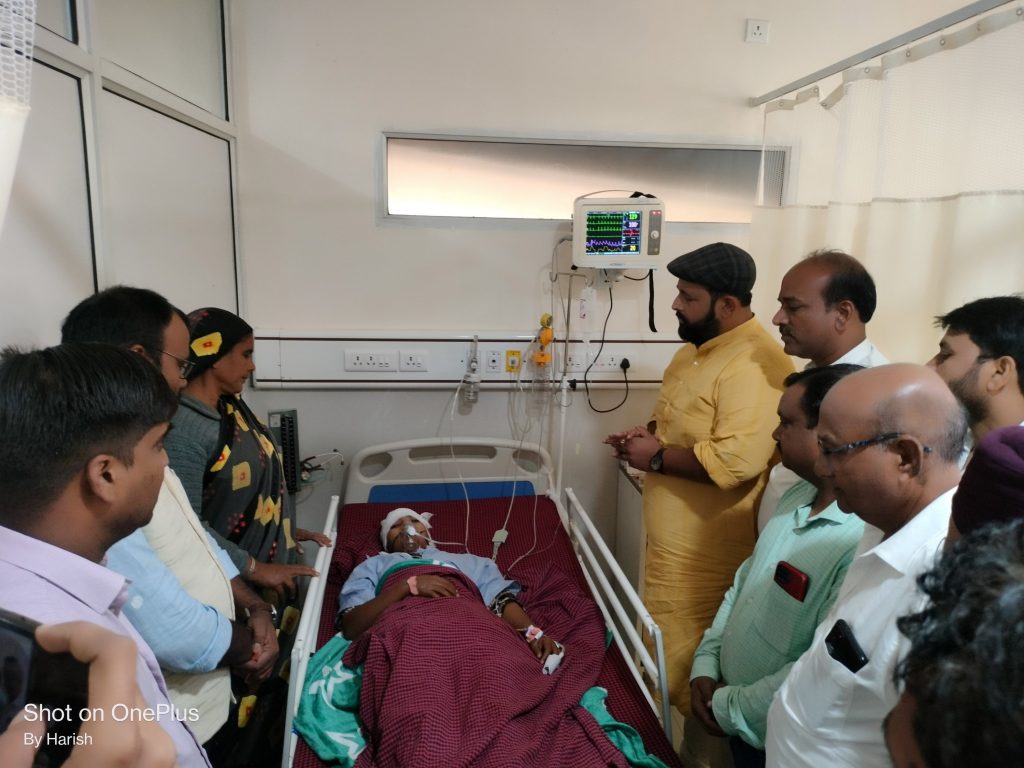 प्रबल प्रताप जुदेव के साथ कोटा समाज सेवी विष्णु अग्रवाल प्रदीप कौशिक बाबा गोस्वामी घायल छात्रा को देखने पहुंचे सूर्या अस्पताल बिलासपुर।