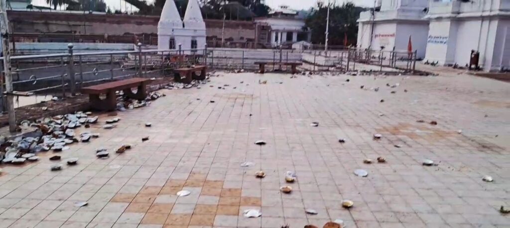 *नर्मदा मंदिर प्रांगण अंदर भंडारे के बाद गंदगी पसरी भक्तों ने की आपत्ति*