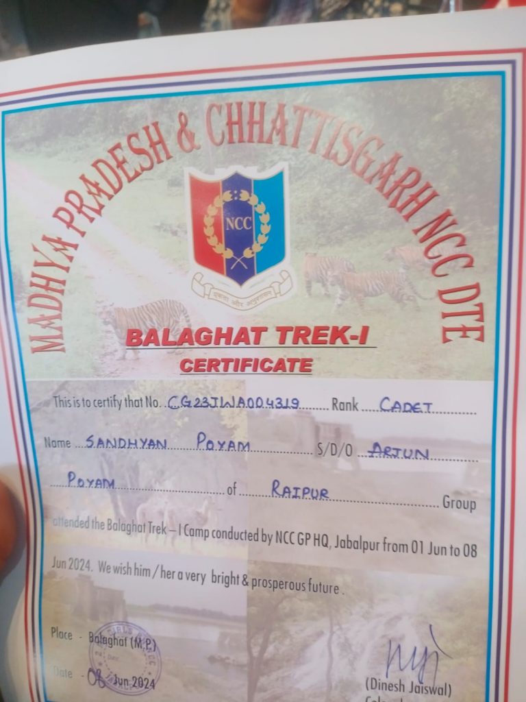 बैहर बालाघाट मध्यप्रदेश में आयोजित नेशनल ट्रैकिंग कैंप 2024 के लिए चयनित शामपुर हायर, सेकेंडरी स्कूल से तीन छात्राएं योगिता नेताम जिग्यासा मरकाम एवं संध्या पोयाम अपना कैंप सफलतापूर्वक पूर्ण कर वापस जिला मुख्यालय कोंडागांव पहुंचे । उनको लेने कोंडागांव बस स्टैंड में भीषण गर्मी की तपती दुपहरी में पहले से ही संस्था के एन सी सी केयर टेकर सियाबती पोयाम , प्राचार्य अनूप कुमार विश्वास एवं खासतौर पर स्थानीय कलाकार प्रोत्साहक , प्रेरक संकुल सोनाबाल में प्रधान अध्यापक कैडेट्स स्वागत हेतु पंहुचे थे ।
