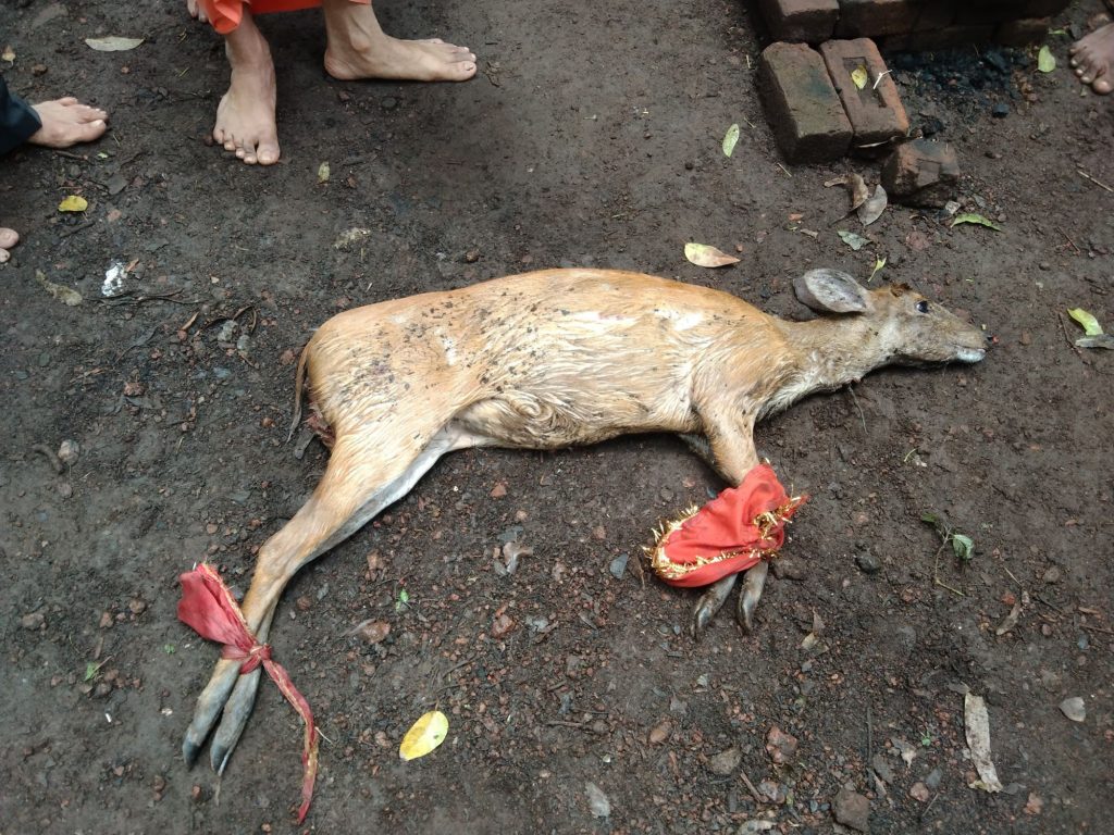 रुद्रगंगा में कुत्तों से संतो व भक्तों ने बजाई चीतल की जान ।