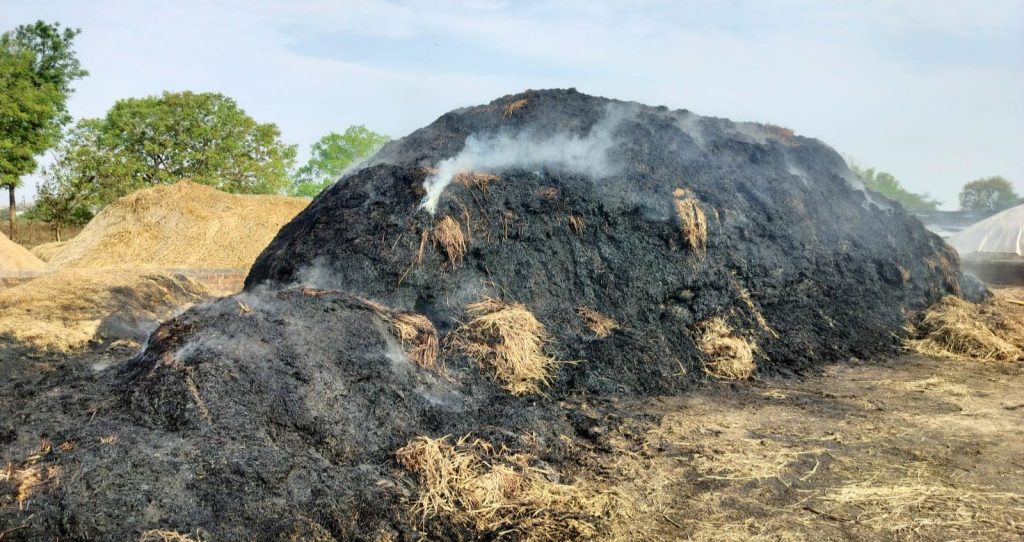 आग बुझाने में लगे रहे लेकिन पैरावट (खरही) ठेर में आग लग गयी थी वहीं कोटा नगर पंचायत से दमकल कर्मियों ने पानी से आग बुझाने में लगे रहे लेकिन आग सुबह तक नहीं बुझपाई
