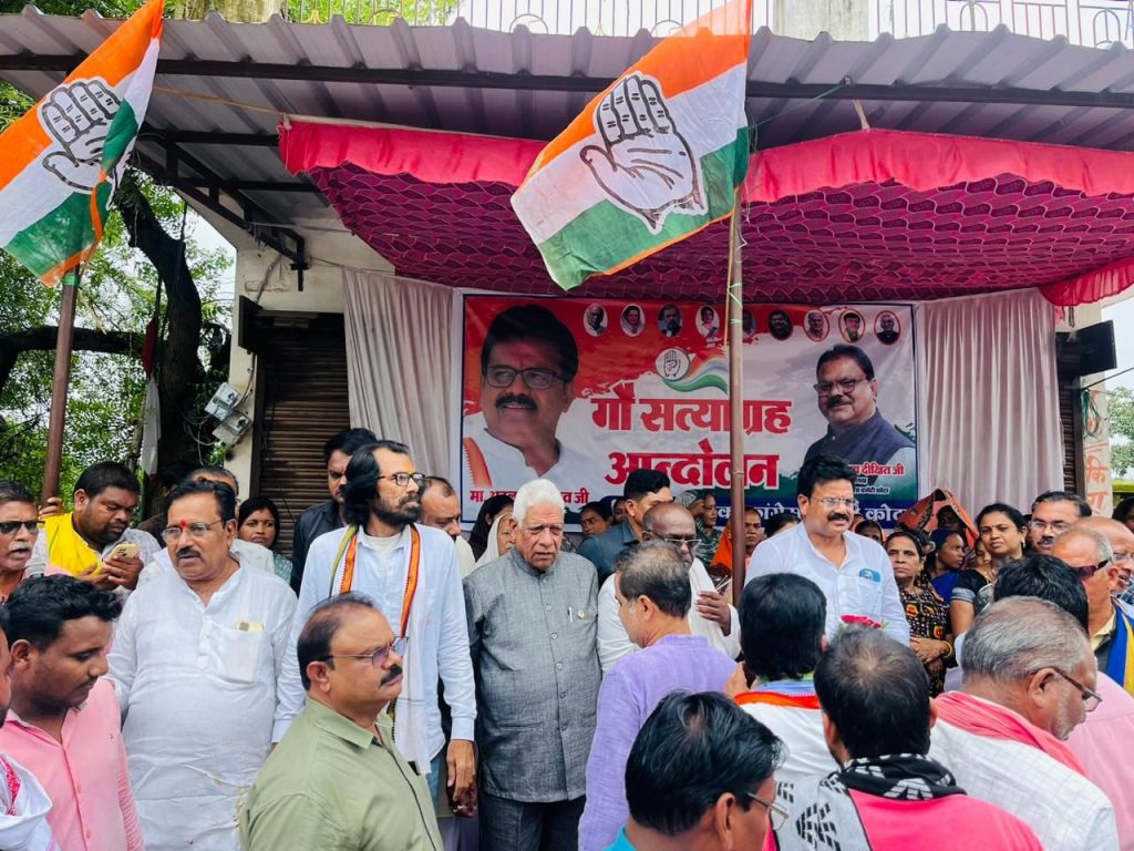 गए गाय रोड़ों पर रहती है जिसके कारण आए दिन रोड दुर्घटनाएं हो रही है इन गाय की देखभाल करने वाला कोई नहीं है धर्म के नाम पर गाय के नाम पर इन्होंने वोट मांगा हम चैन से बैठने नहीं देंगे अटल श्रीवास्तव कोटा विधायक का कहना है कि आए दिन गौ तस्करी एवं रोड पर गौ माता की एक्सीडेंट से हत्या हो रही है इन्हें देखने वाला कोई नहीं है एक्सीडेंट से गाय तड़पकर मर रही है वाहरे विष्णु देवसाय तेरा खेल इस भारतवर्ष में गाय की पूजा हिंदू  धर्म में की जाती है आज उन्हें गायों को ऐसे मौत के मुंह में खुला छोड़ दिया गया है। एकदिवसीय आंदोलन को लेकर सभी कांग्रेस के विधायक एवं कार्यकर्ता एसडीएम कार्यालय घेराव करने के लिए लगभग 500 गायों को लेकर पहुंचे प्रशासन के द्वारा चाक-चौबंदव्यवस्था की गई थी उसमें पुलिस प्रशासन कोटवार एवं महिलाओं को भी एसडीएम जनपद कार्यालय  मेनगेट के सामने खड़ा कर दिया गया था  एवं सायरन बजाकर बड़े-बड़े एटम बम फोड़ कर  प्रशासन के द्वारा गायों को बिचकाने का काम किया गया जिससे स्थिति बिगड़ी  जिसमें एक गाय जख्मी भी हो गई उक्त आंदोलन मेंअगर कोई अनहोनी घटना घट जाती इसका जवाबदारी किसकी  होती कौन होता जिम्मेदार इसी कड़ी में आंदोलन में पहुंचे कोटा विधायक अटल श्रीवास्तव अभय नारायण राय प्रमोद नायक आदित्य दीक्षित अरुण त्रिवेदी कुलवंत सिंह ठाकुर कान्हा गुप्ता संतोष मिश्रा फूलचंद अग्रहरि विशेष गुप्ता कांग्रेस के समस्त कार्यकर्ता उपस्थित थे।