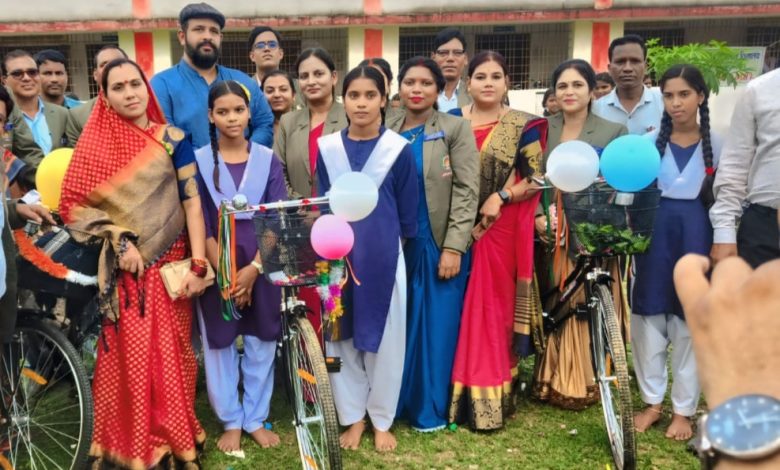 संस्था की प्राचार्य  आशा दत्ता के मार्गदर्शन में आज 150 सरस्वती नि:शुल्क साइकिल का वितरण अतिथियों के द्वारा छात्राओं को किया गया ।