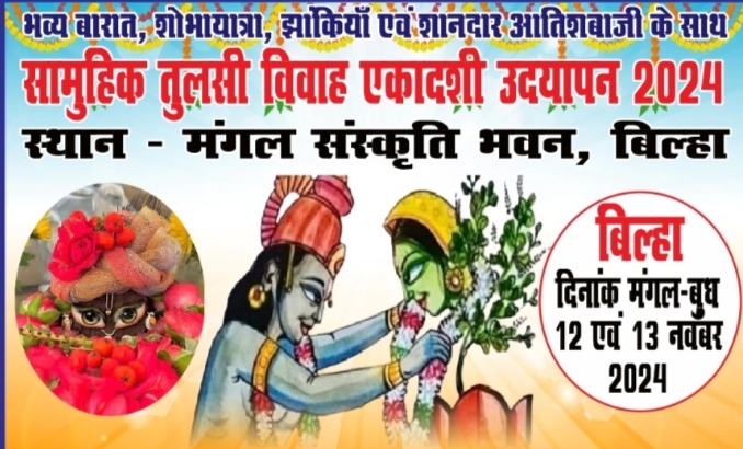*बिल्हा में सामूहिक तुलसी विवाह एवं एकादशी उद्यापन 12 व 13 नवंबर को*